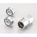 ハイスペックリアサス等を盗難から守るため装着してる。専用の凸凹なキーを使って脱着するロックナットタイプ。ボルトタイプもラインナップ。
